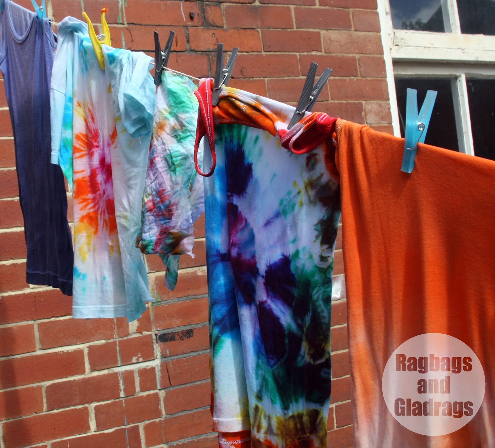 Tie dye is fun messy and yields brilliant results for minimal cost. You might want to try some of the techniques shown here. I've included instructions so you can have a go. It's all about experimenting - so have fun.